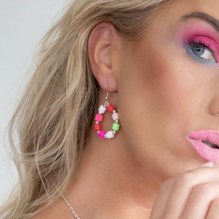 925 Sterling Silver earrings, Colorful beaded earrings, Bright Multicoloured earrings, Resin earrings, Gift for her, bright summer earrings
