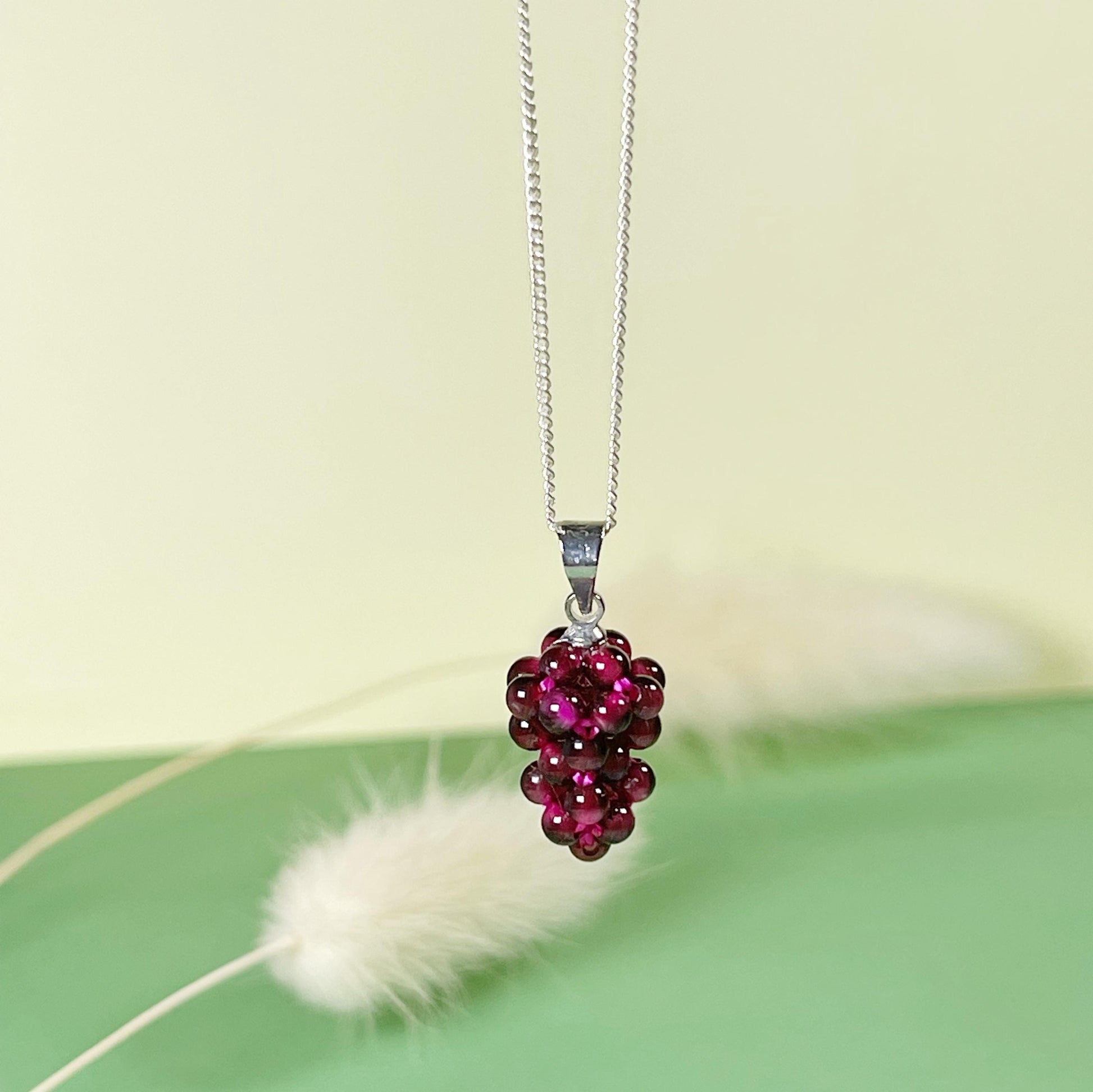 Beautiful burgundy beaded grape pendant necklace is the perfect gift for fruit and wine lovers alike.