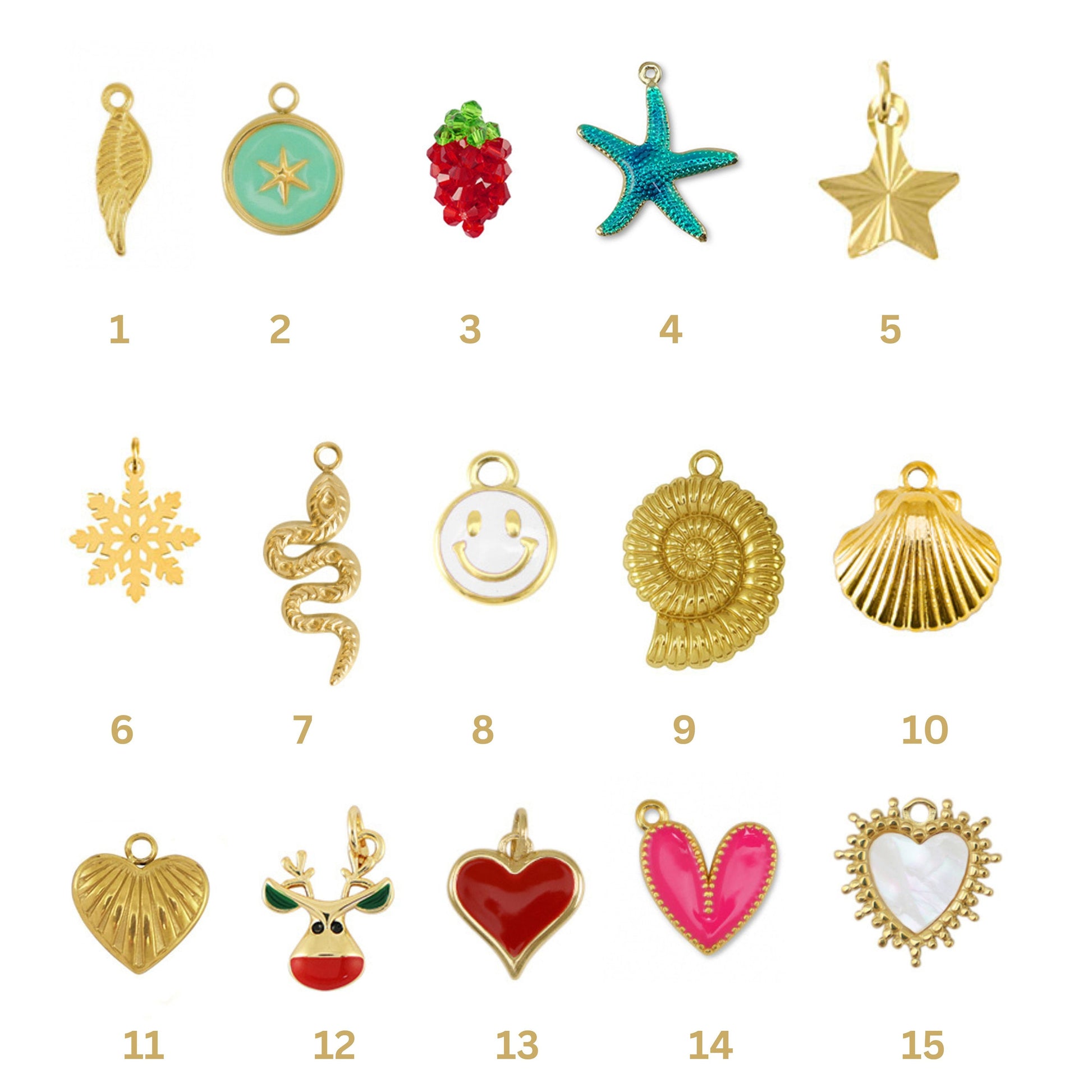 We have a selection of charms as well as birthstones that can be added to the chain.
