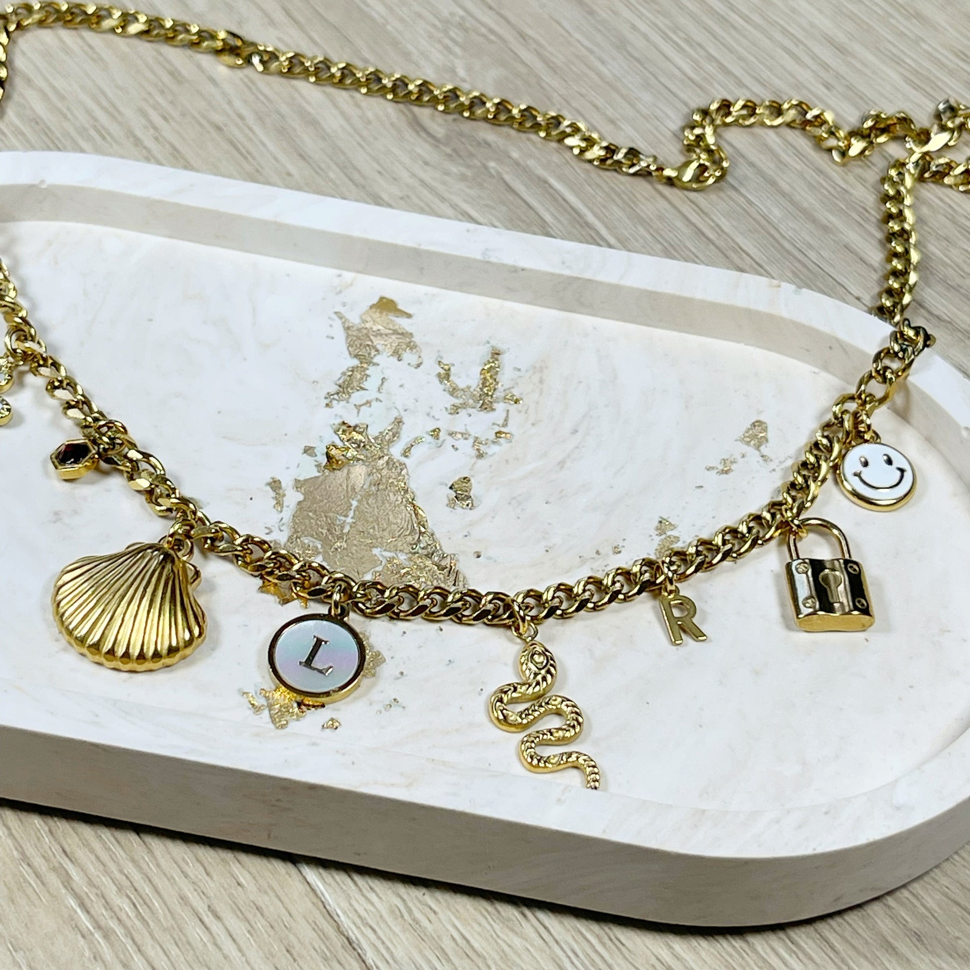 Build Your Own Custom Charm Necklace, Gold Charm Necklace, Customizable Charm Necklace, Vintage Style Chunky Necklace, Multi Charm Necklace