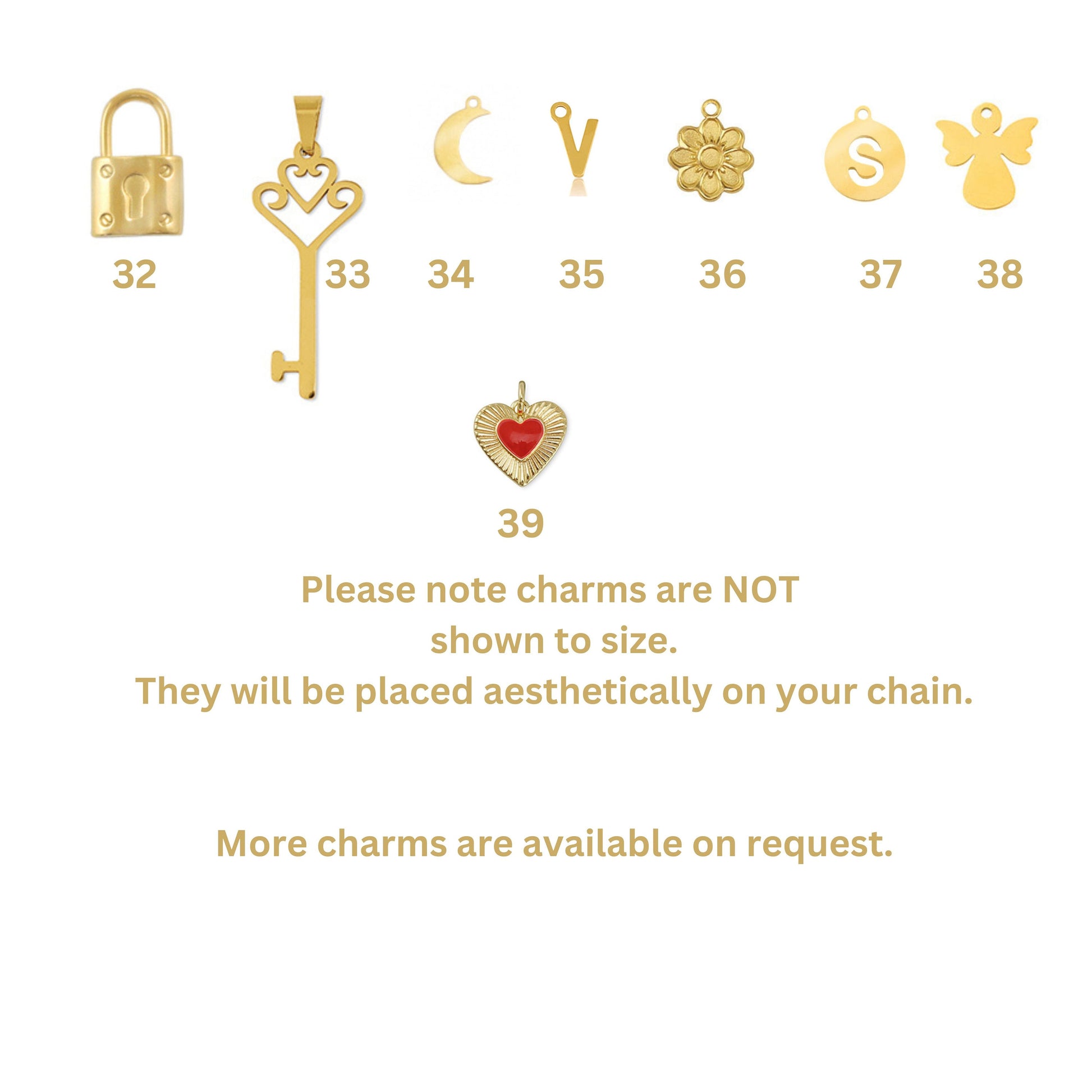 Beautiful gold stainless steel necklace with a heavy weight, adorned with the charms of your choice. All our components are high quality and create your own unique style.