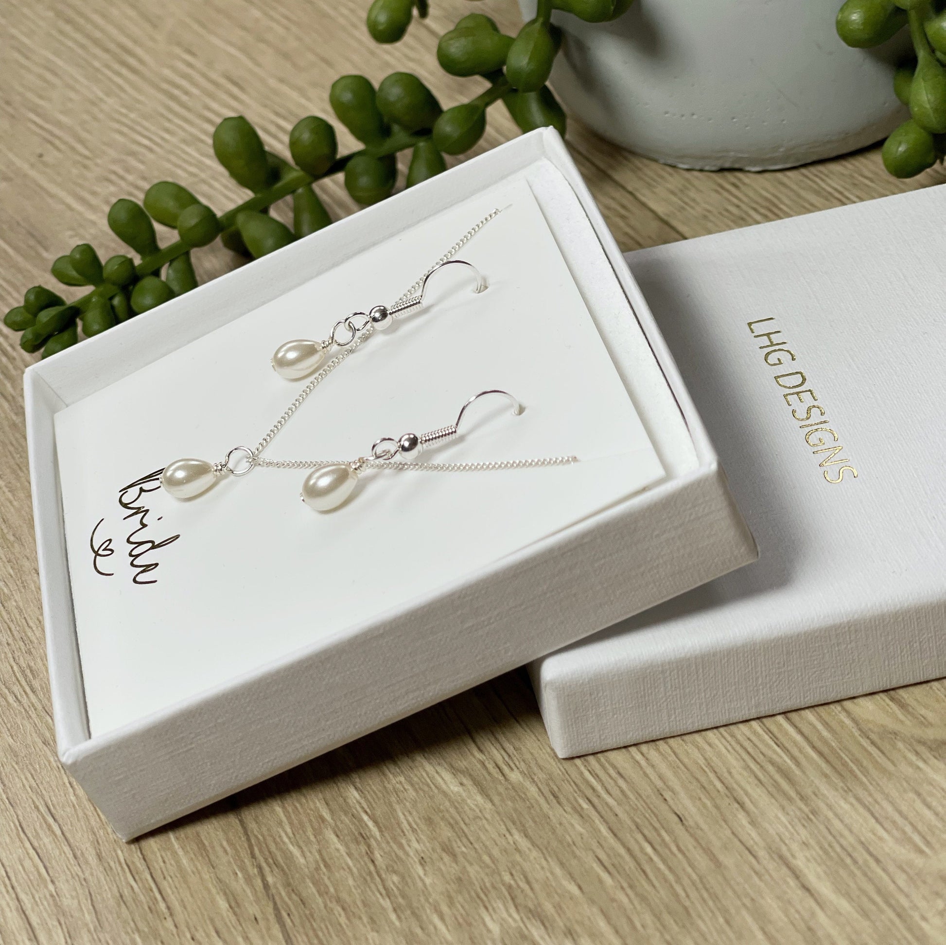 Are you looking for dainty teardrop bridal jewellery? Our Bridesmaid jewellery set in sterling silver and teardrop pearls will be perfect for any dress.