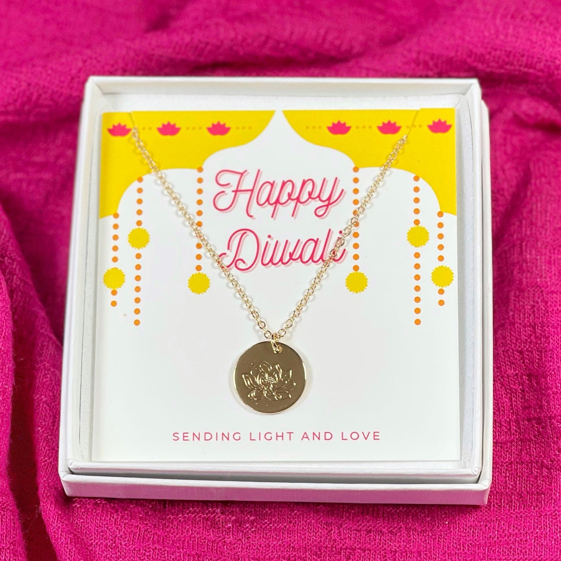 Diwali gift for her, Diwali lotus gold necklace, Diwali card, Gold necklace diwali gift, lotus flower necklace,