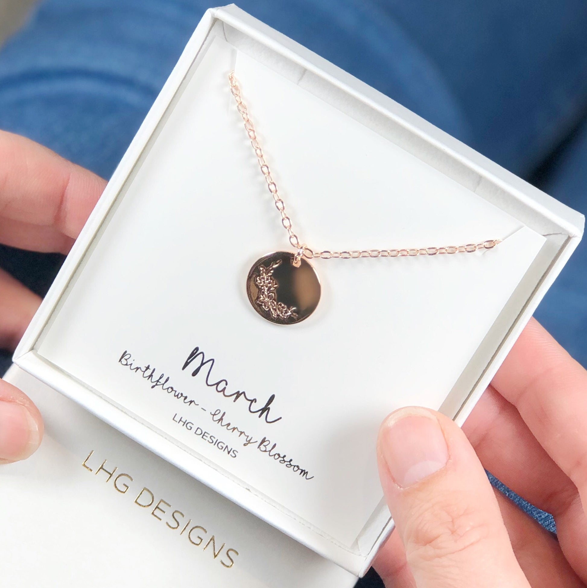 March Birth flower necklace, March Birthday gift for her, Cherry Blossom necklace, Birth flower jewellery, Mother's Day Gift, Gift for mum