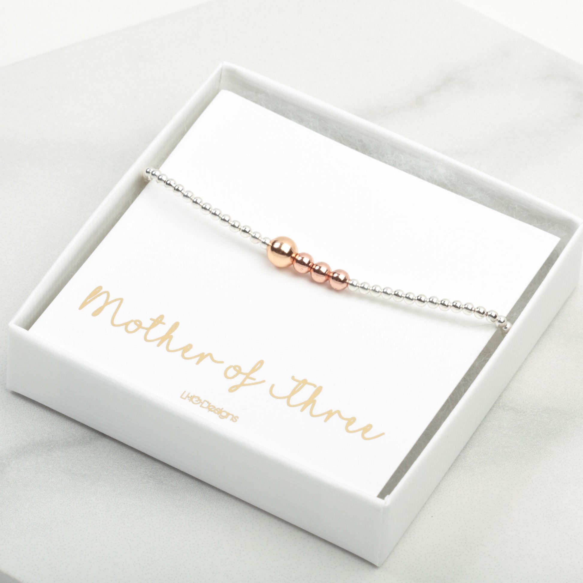 This handmade bracelet is delicate but has lots of style. With added meaning, the accent beads are available in Rose Gold , Silver and Yellow Gold.
