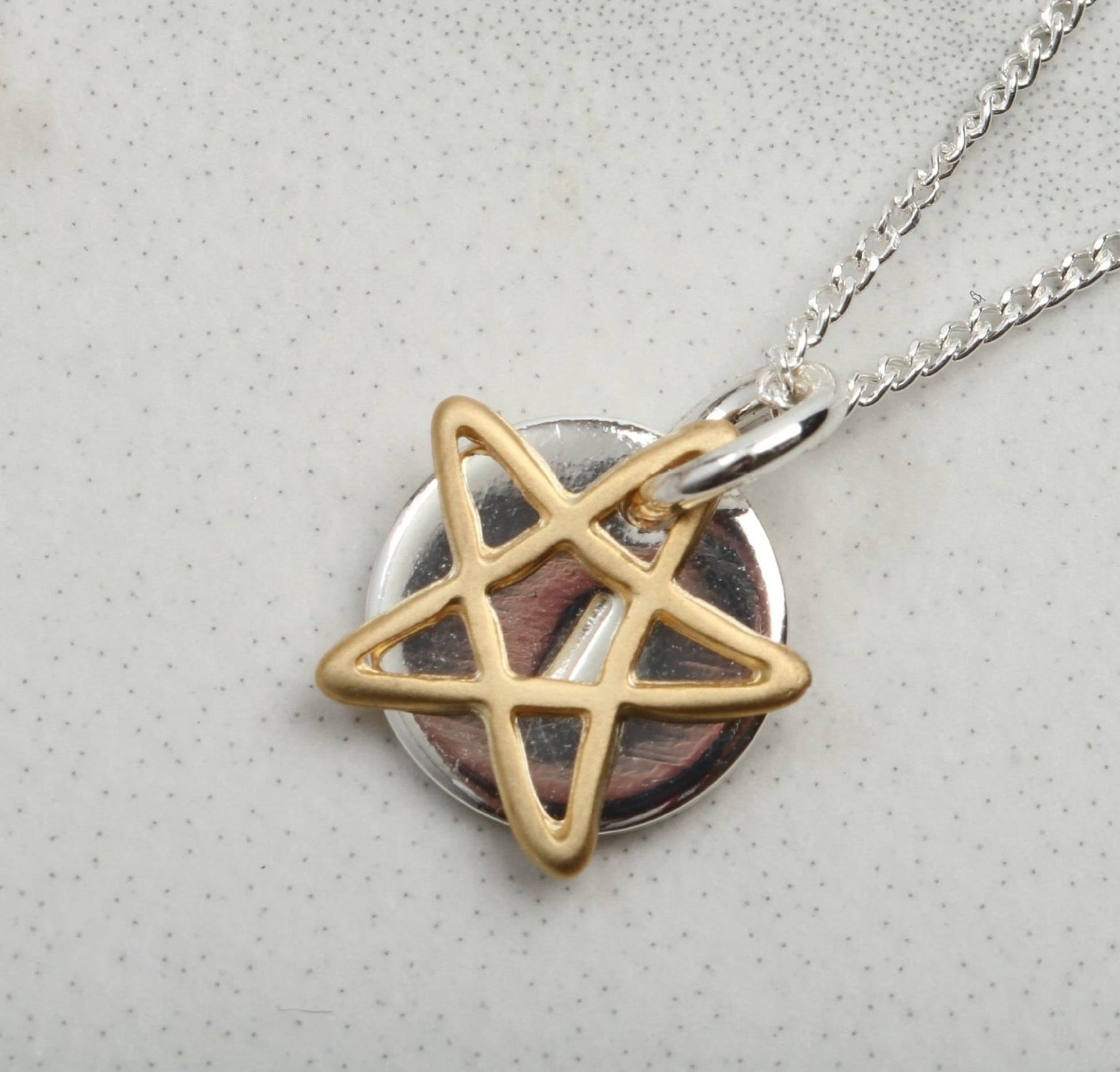 Personalised Gold & Silver Star Necklace, Disc pendant necklace, Minimalist Jewellery, Birthday Gift For Her, wife mum friend sister,