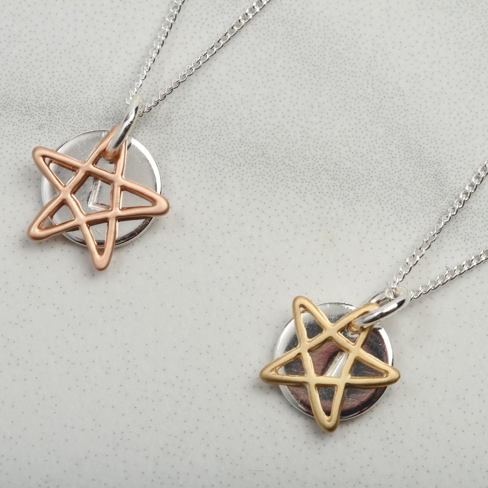Personalised Rose Gold & Silver Star Necklace, Disc pendant necklace, Minimalist Jewellery, Birthday Gift For Her, wife mum friend sister,